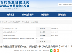 中国质量新闻网讯 2023年11月7日,安徽省药品监督管理局发布暂停生产解除通知书(皖药监药停解〔2023〕2-5号)。