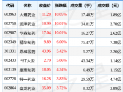 中药板块盘中下跌1.49%,ST香雪领跌8.43%,生物谷、葫芦娃跌…