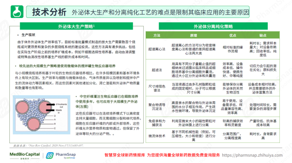 外泌体大生产和分离纯化工艺的难点是限制其临床应用的主要原因。