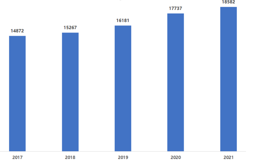 中投产业研究院发布的《2022-2026年中国药物制剂行业深度调研及投资前景预测报告》指出,相较于往年,全球药品研发规模持续增加,2021年全球在研药物数量已达到18582种。与2020年相比,增长率达4.76%。