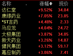 2月13日,中药板块早盘走高,截至发稿,达仁堂涨超9%,康缘药业,*ST吉药,马应龙跟涨。