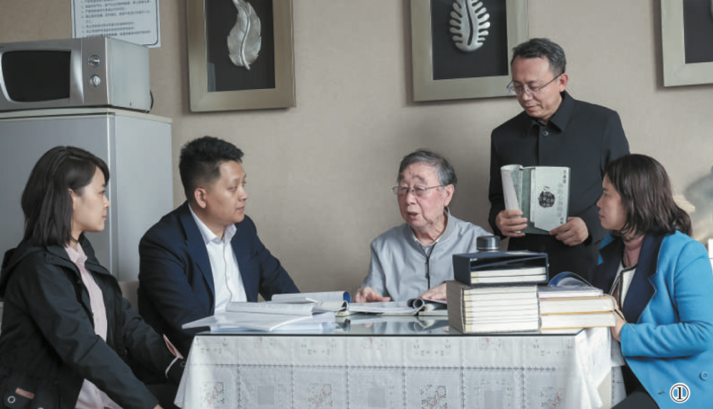 ▲王永炎院士(左三)与葛又文(左二)等科研人员进行交流。王燕平摄