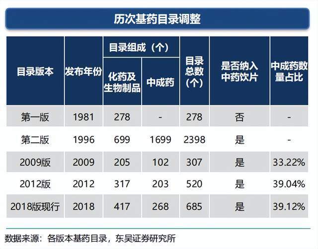 除了前两年国家支持配套政策陆续落地、集采以价换量,还有一个重要的催化,可能是基药目录调整动作的临近。自2009年以来,基药目录内的中成药数量和占比逐渐增加。