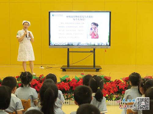 骨二科护士长郭叙英为教职工带来了科普讲座,采用PPT讲解的方式,图文并茂、深入浅出地给全校教职工讲解了“海姆立克急救术”及“心肺复苏术”急救知识,为了让教职工更直观地感受和掌握急救要领,在医务人员的指导下,现场进行了实操演练,气氛活跃,大家踊跃参与,老师们纷纷表示受益匪浅。