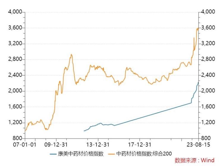8月14日,中药材综合200市场价格指数报3602.28点,同样续创历史新高。