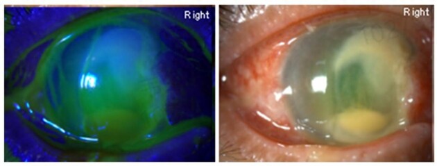 李阿姨焦急万分,在多方打听下,来到南宁爱尔眼科医院就诊。经检查,李阿姨的右眼诊断为“右眼细菌性角膜溃疡”,看到“溃烂”的右眼,李阿姨立马急切询问是否需要做角膜移植手术?