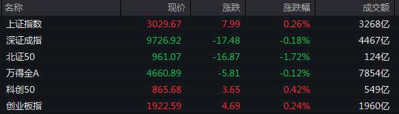 11月30日,A股三大指数涨跌不一。截至收盘,沪指涨0.26%,深成指跌0.18%,创业板指涨0.24%。北证50指数跌1.72%。