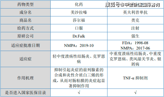 氨基水杨酸类药物是治疗中重度炎症性肠病的一线药物,但其对活动期重度性结肠炎、重度克病和小肠型克病疗效不佳或无效;激素类药物副作用较大,且仅能用于诱导缓解,而不能作为维持治疗,可能引发感染风险增加、骨质疏松、糖耐量下降等问题;免疫抑制剂能够适用于激素无效或激素依赖的病人,但是免疫抑制剂的副作用比较显著,比如骨髓抑制等,且容易造成不耐受。