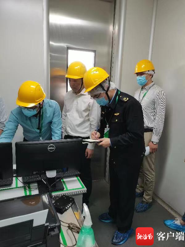 海南省药品监督管理局工作人员对药品生产企业进行检查。