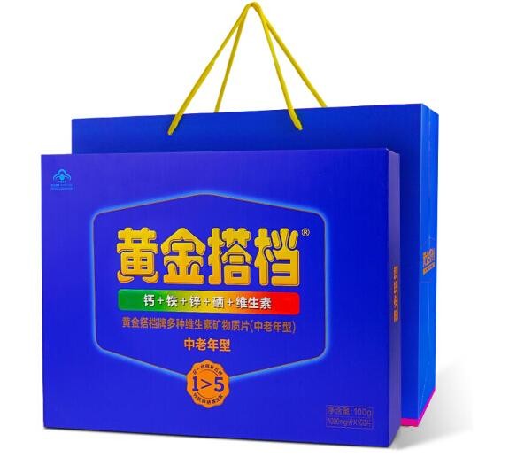 黄金搭档 多种维生素矿物质片礼盒装(适用中老年)1000mg*100片 补充钙铁锌硒维生素叶酸