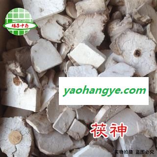 【性 状】:该品20%带神,其余均为茯苓,请买家看清之后下单。干燥的菌核与茯苓相同,惟中间有一松树贯穿。商品多以切成方形的薄片,质坚实,具粉性。切断的松根棕黄色,表面有圈状纹理(年轮)。