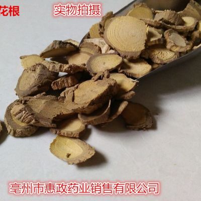 【性状】本品呈类圆形或不规则形的片状,直径1~3cm。表面土黄色或土红色,有纵皱纹,有的可见支根或支根的断痕。切面皮部棕色,木部淡黄色,纤维性。气微,味淡。