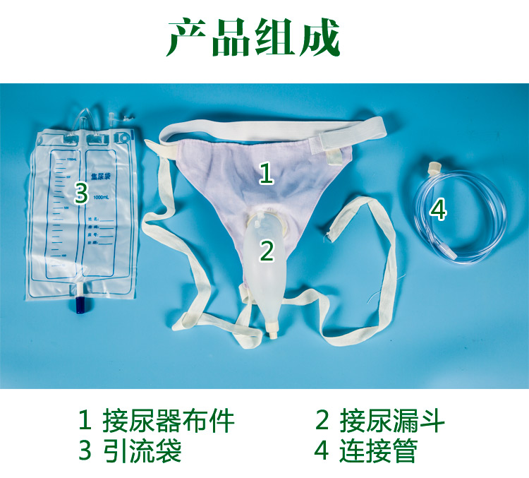 ★产品由透气尿斗、储尿袋、导尿管等组成
